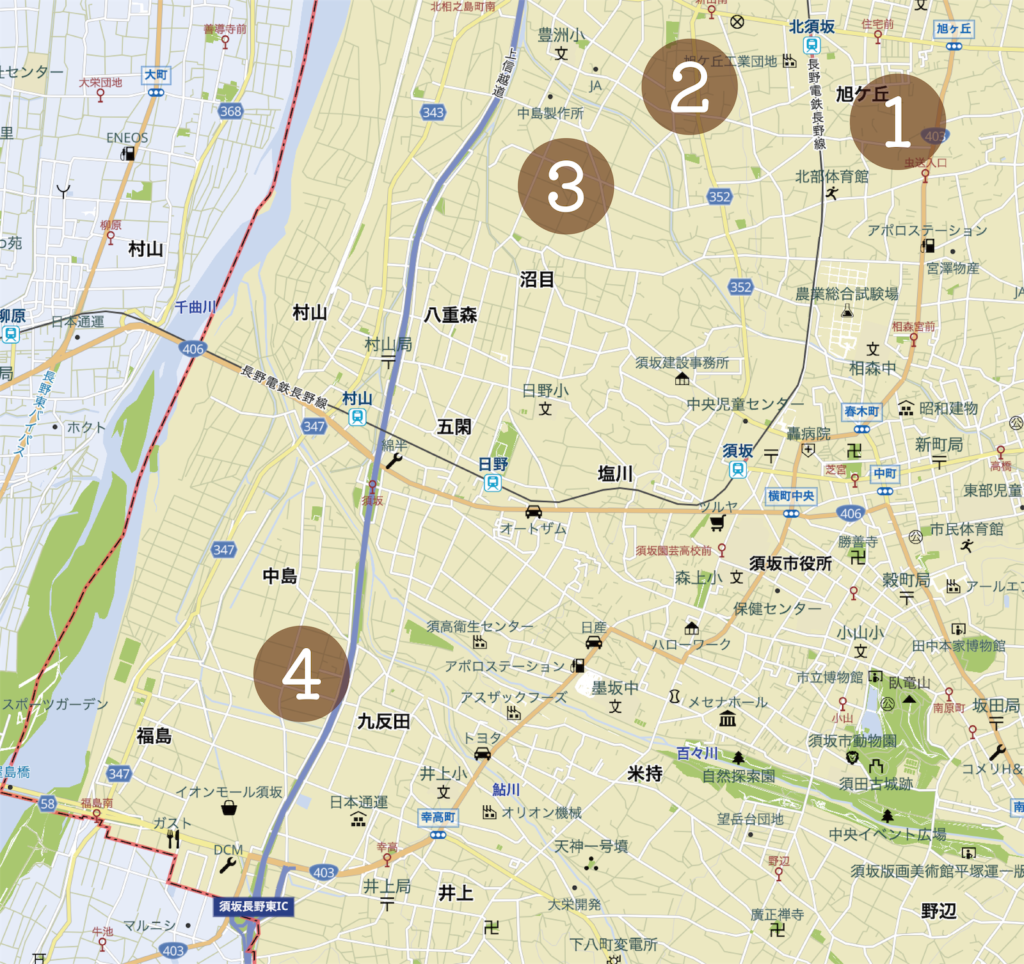 私たちのぶどう畑は須坂市内に複数あり、南北に大きく離れています。